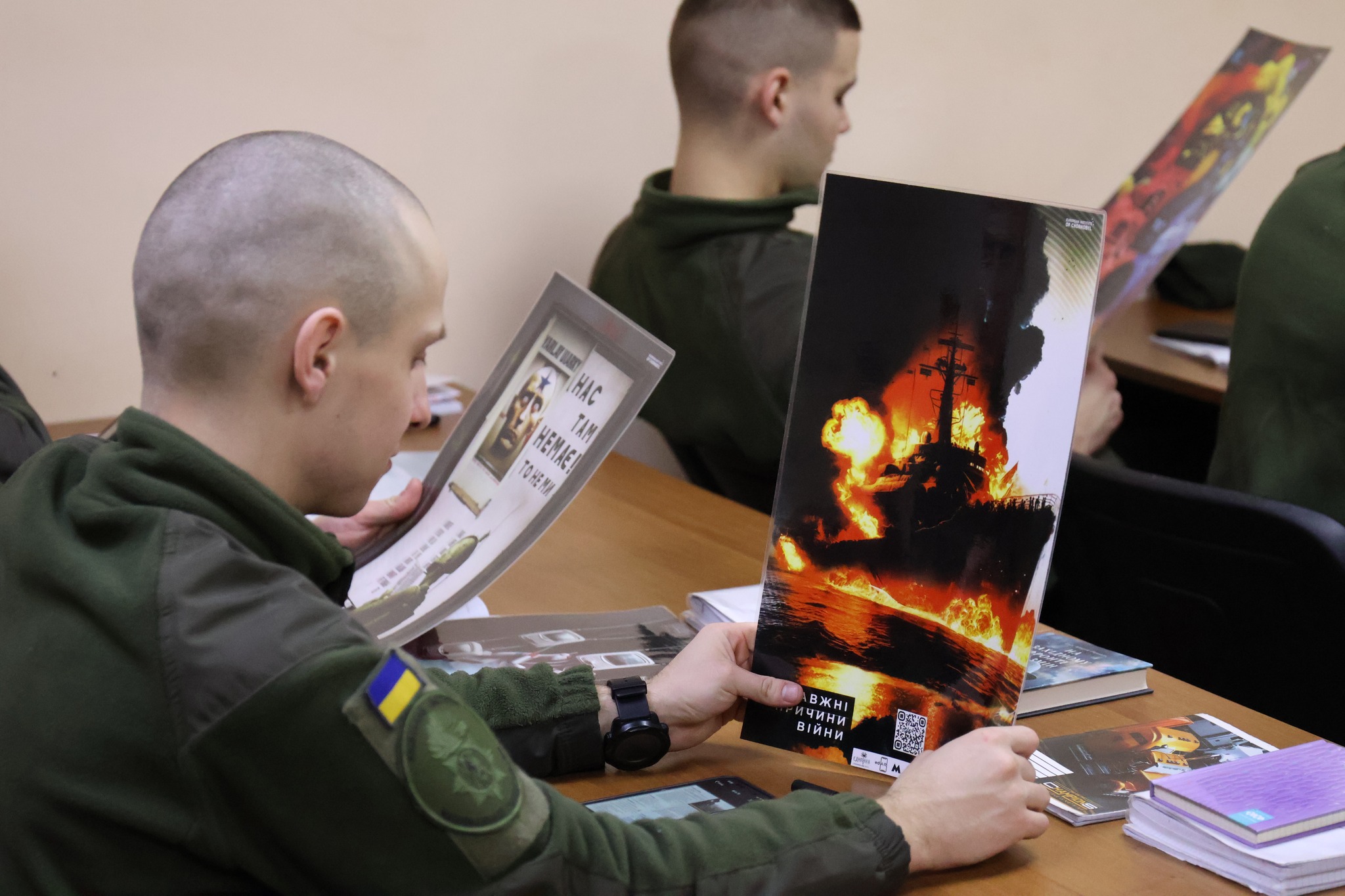 Також курсанти змогли переглянути матеріали виставки «Справжні причини війни, або як працює російська пропаганда», що відкрилась у Київському інституті НГУ.