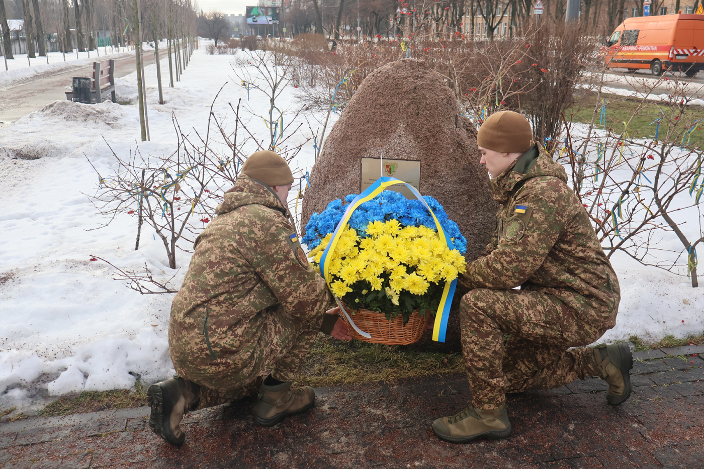 Курсанти Київського інституту НГУ також долучилися до церемонії покладання квітів до меморіалу на честь полеглих захисників у Сквері Героїв України. Учасники заходу вшанували загиблих та провели молебень за упокій душ воїнів. У заході взяли участь представники КМДА, Святошинської РДА, а також представники Національної поліції та ДСНС.