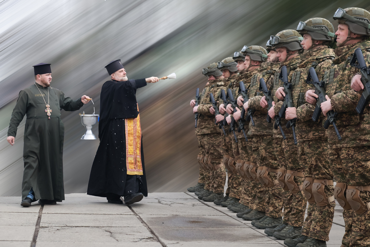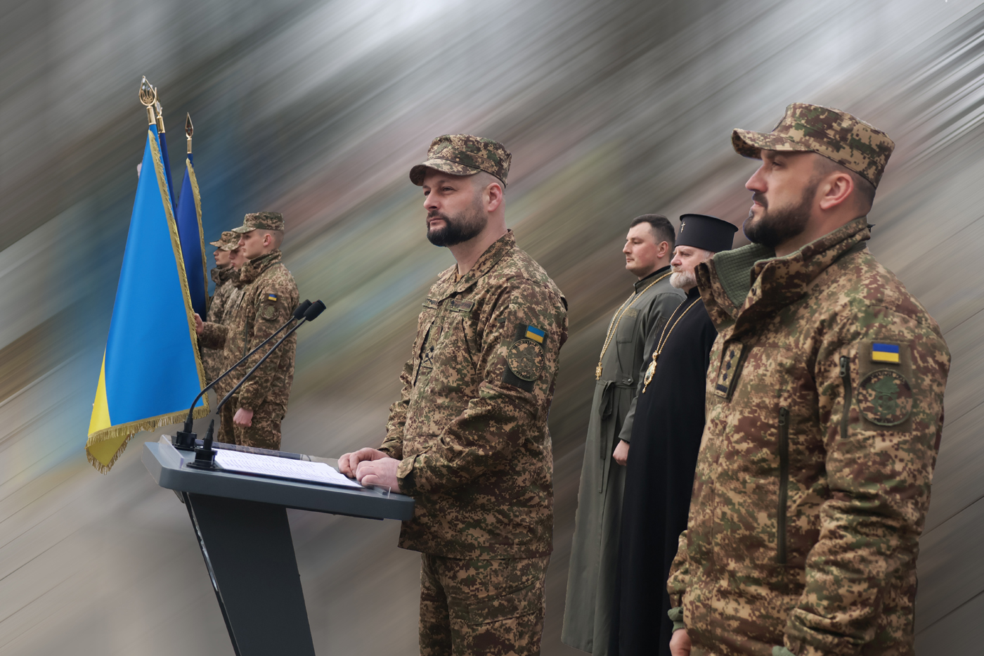 Голова Синодального управління військового духовенства Православної церкви України Митрополит Іоанн звершив благословення особового складу, окропивши військовослужбовців свяченою водою.