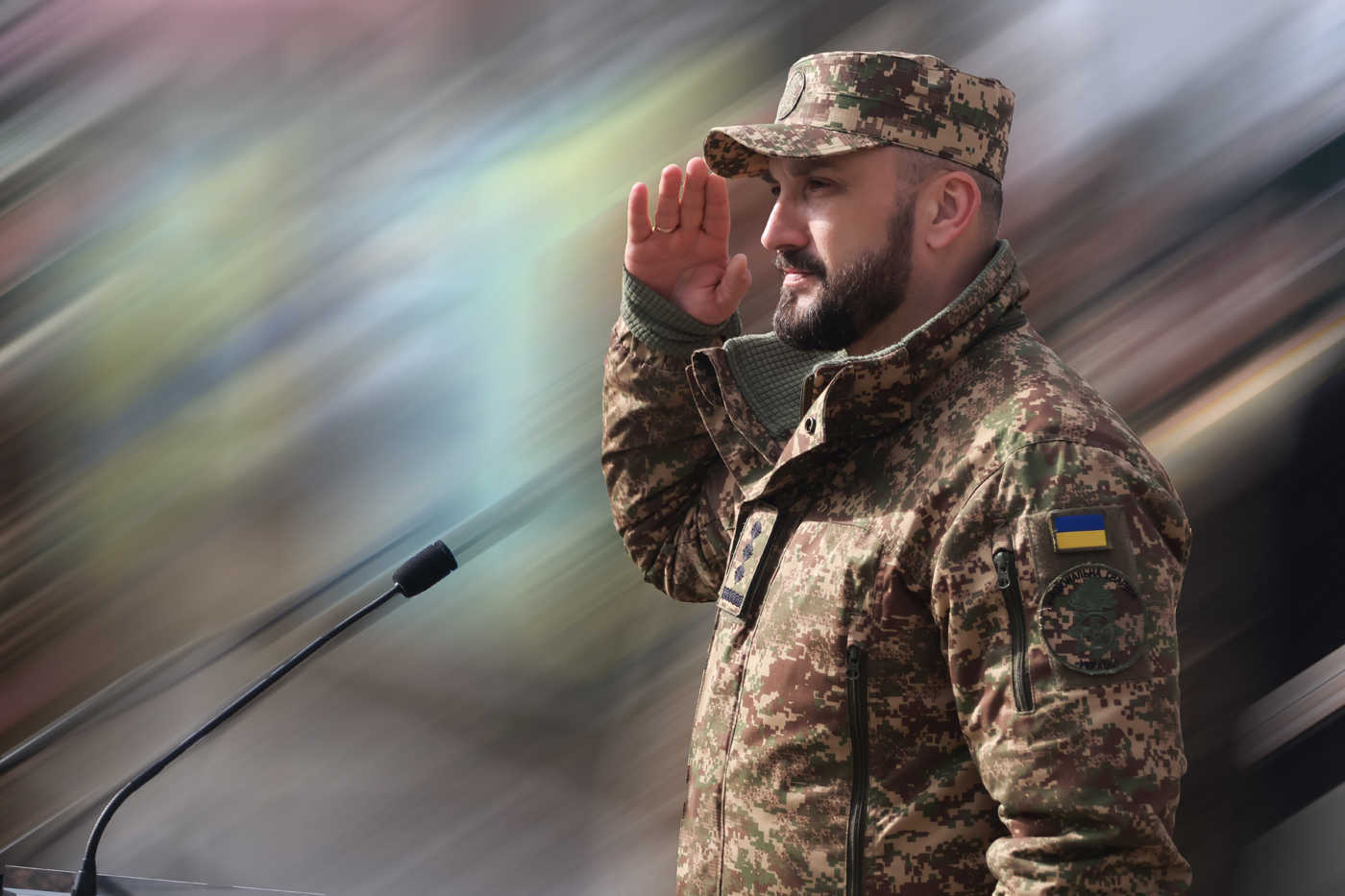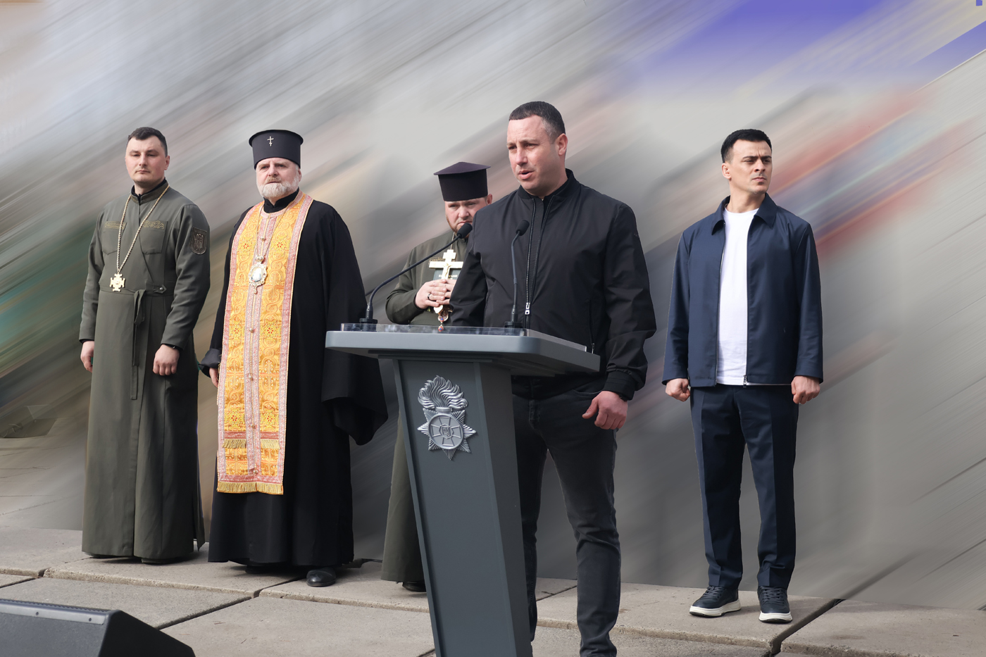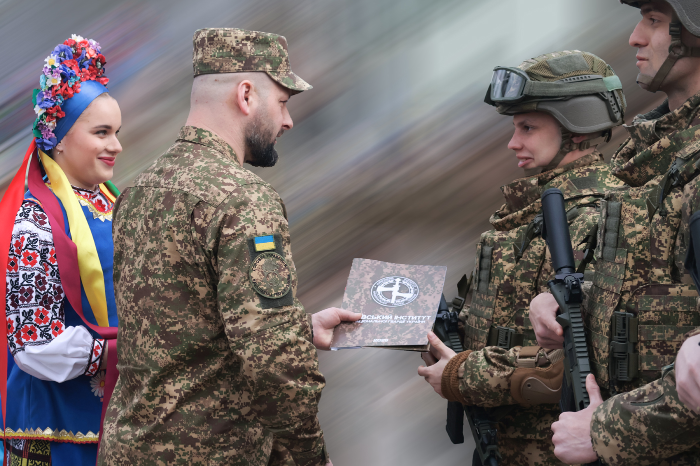 Після цього слово було надано начальнику Київського інституту Національної гвардії України, який, звертаючись до молодих офіцерів, відзначив високий рівень їхньої підготовки, вмотивованість і готовність до служби, наголосивши на важливості обраного ними шляху — служіння українському народові та захисту держави. До привітань також долучилися представники влади й почесні гості, підкресливши значущість цього вибору та готовність випускників до сумлінного виконання службових обов’язків.