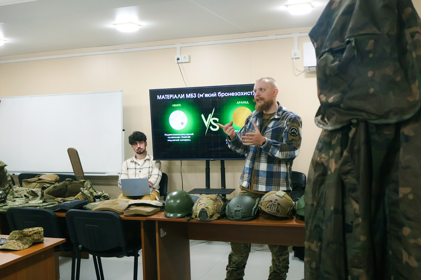 Було представлено модулі м’якого балістичного захисту та роз’яснено відмінності між матеріалами: арамідом (кевларом) і надвисокомолекулярним поліетиленом (НВМПЕ).